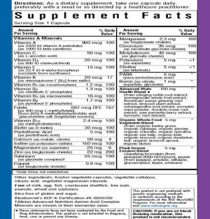 Directions: As a dietary supplement, take one capsule daily, preferably with a meal or as directed by a healthcare practitioner.