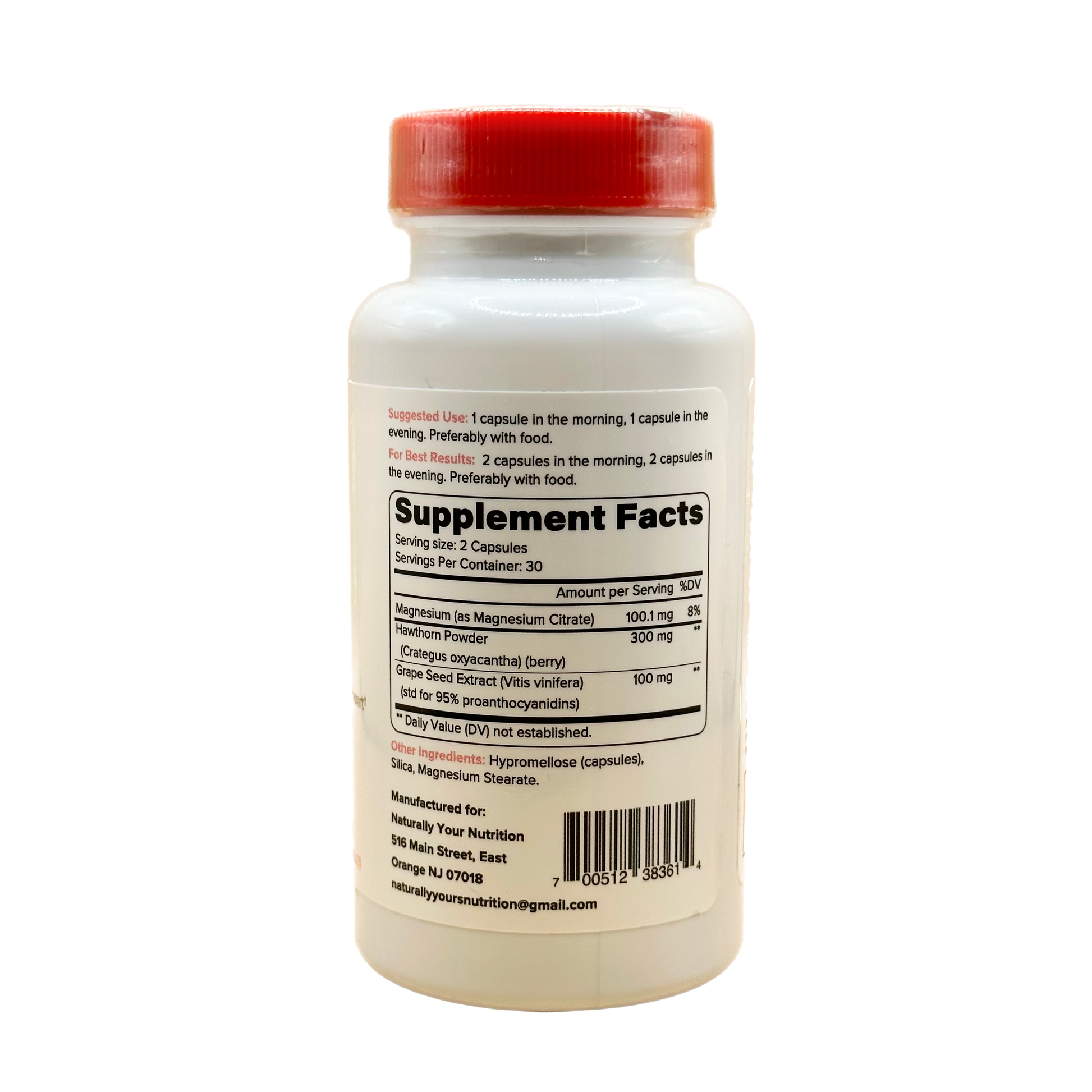 Suggested Use: 1 capsule in the morning, 1 capsule in the evening. Preferably with food.
