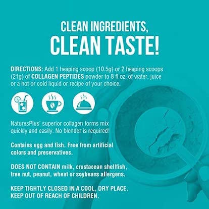 Directions: Add 1 heaping scoop (10.5g) or 2 heaping scoops (21g) of Collagen Peptides powder to 8 fl oz of water, juice, art a hot or cold liquid or recipe of your choice.